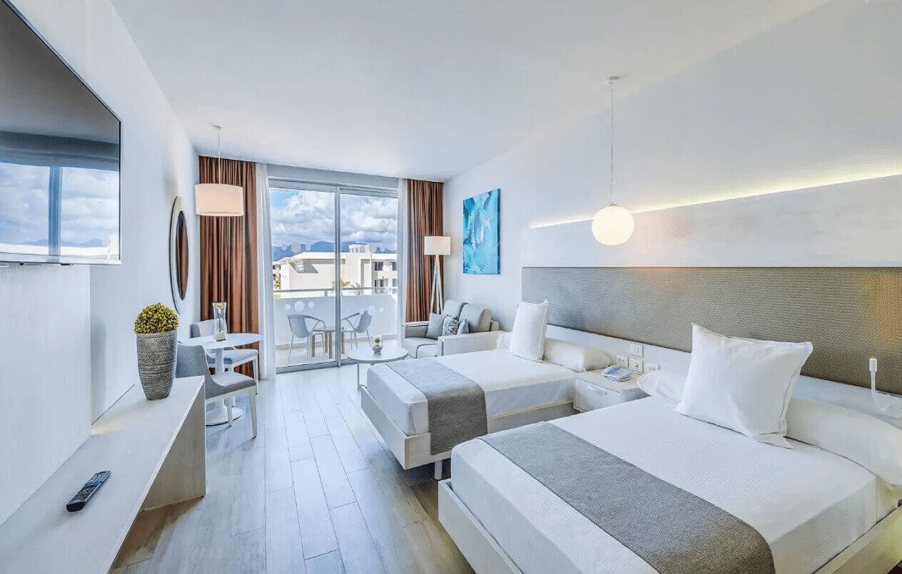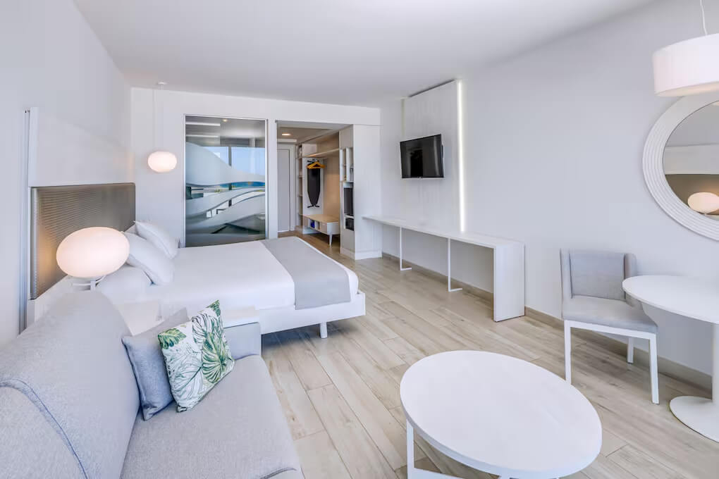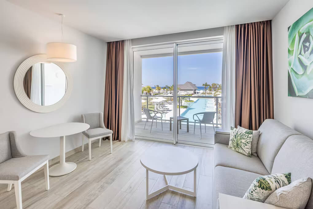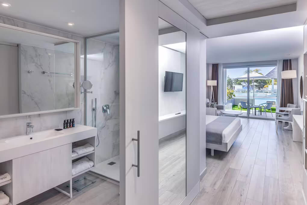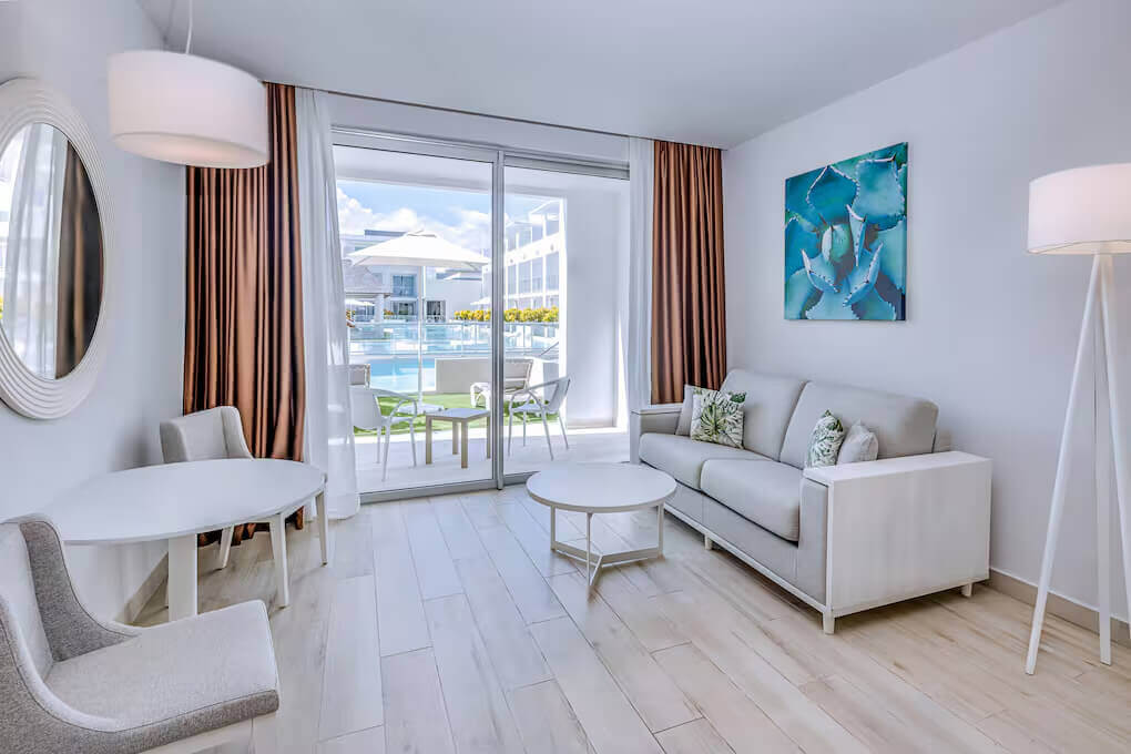 Однокомнатный номер укомплектован 1 двуспальной/2 односпальными кроватями, гостиным уголком с диваном и обеденной зоной. Ванная комната с душем, феном, туалетно-косметическими принадлежностями. В числе удобств система «умный дом», кондиционер, телевизор, Wi-Fi, телефон, мини-бар. С меблированной террасы открывается вид на сад/бассейн.