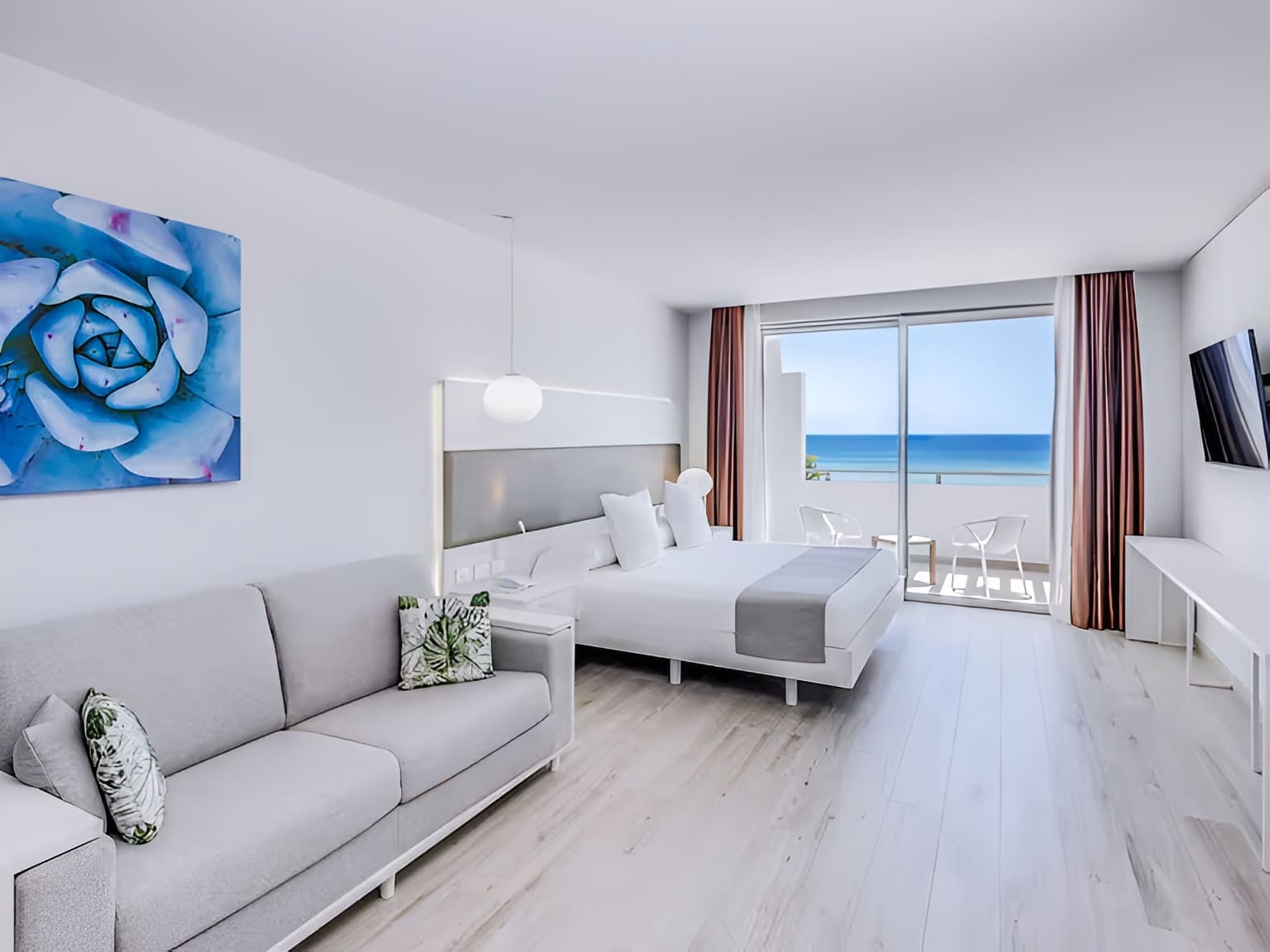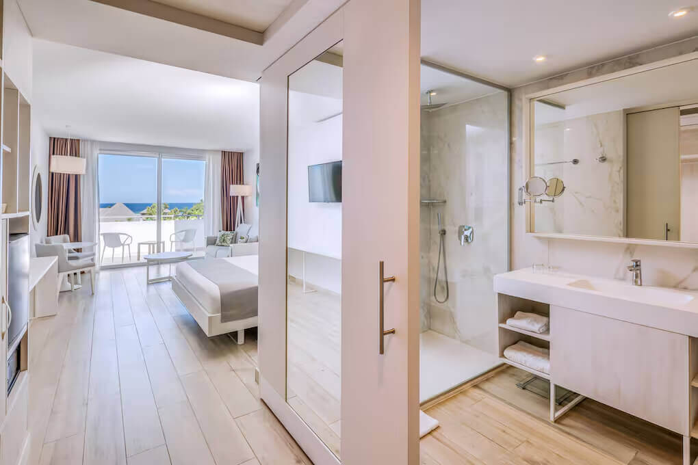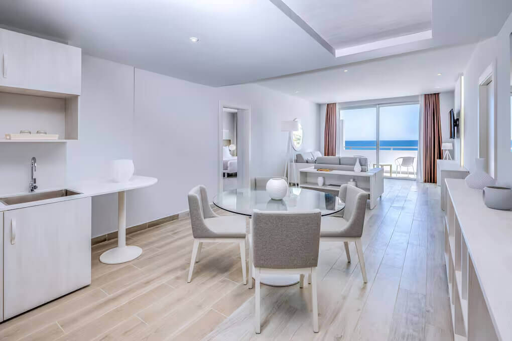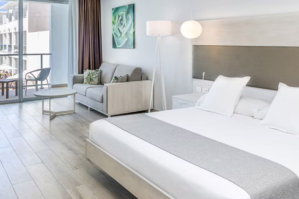Однокомнатный номер укомплектован 1 двуспальной/2 односпальными кроватями, гостиным уголком с диваном и обеденной зоной. Ванная комната с душем, феном, туалетно-косметическими принадлежностями. В числе удобств система «умный дом», кондиционер, телевизор, Wi-Fi, телефон, мини-бар. С меблированной террасы открывается вид на сад/бассейн.
